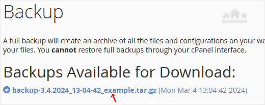 3. Under Full Backup, click on Download a Full Website backup.