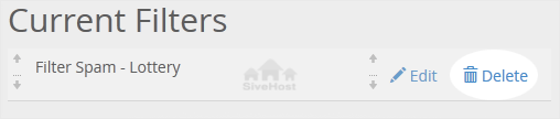 3. Under Current Filters are displayed all existing filters. Click Delete next to the appropriate one.