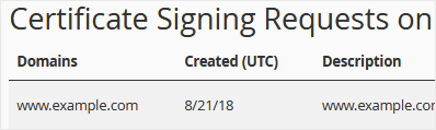 4. Under Certificate Signing Requests on Server, you can see previously generated CSR.