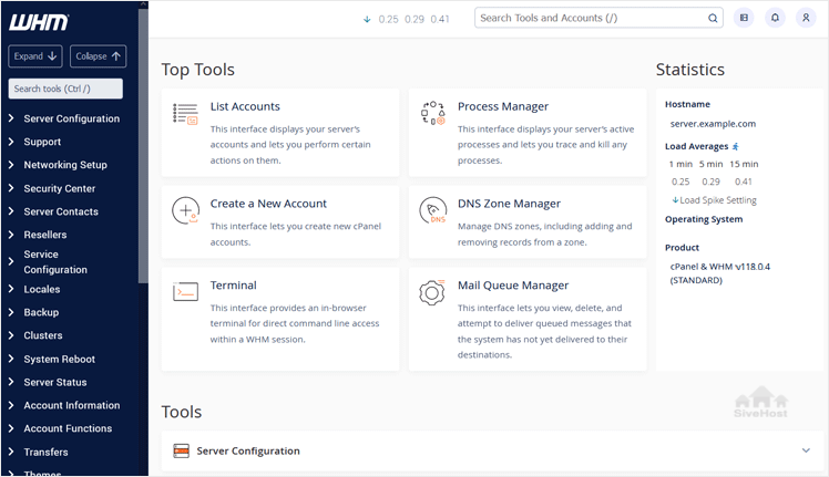 3. If your login details are correct, you will have successfully logged in to your WHM Account.